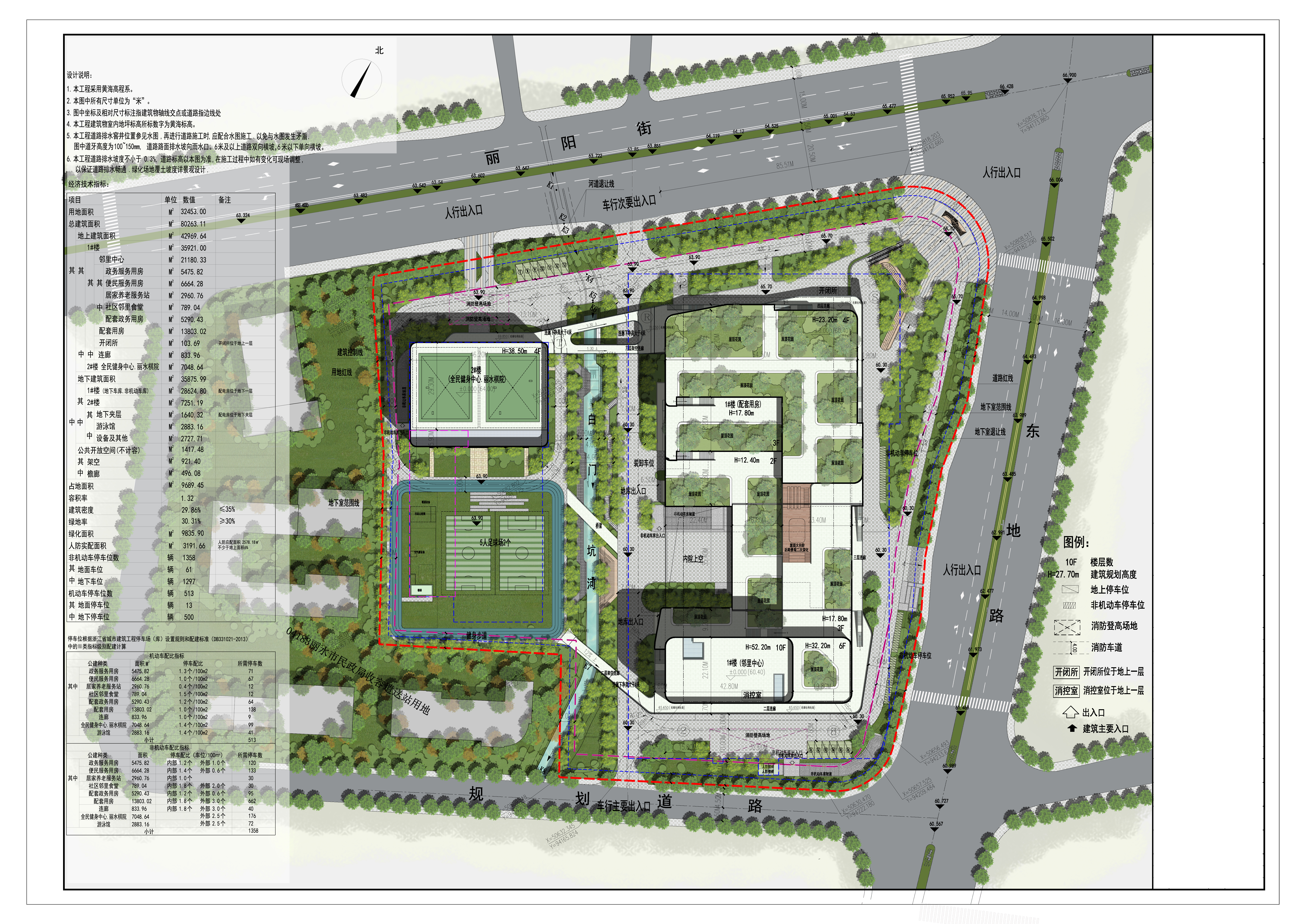 項(xiàng)目位于麗陽街和東地路交叉路西南角地塊,北臨麗陽街,東臨東地路,西側(cè)為保留加油站,南側(cè)為保留的麗水市救助站和頤寧養(yǎng)老院,基地由城市內(nèi)河分為東、西兩個(gè)地塊。項(xiàng)目用地面積32453平方米,建筑密度不大于35%,綠地率不小于30%,建筑限高60米。