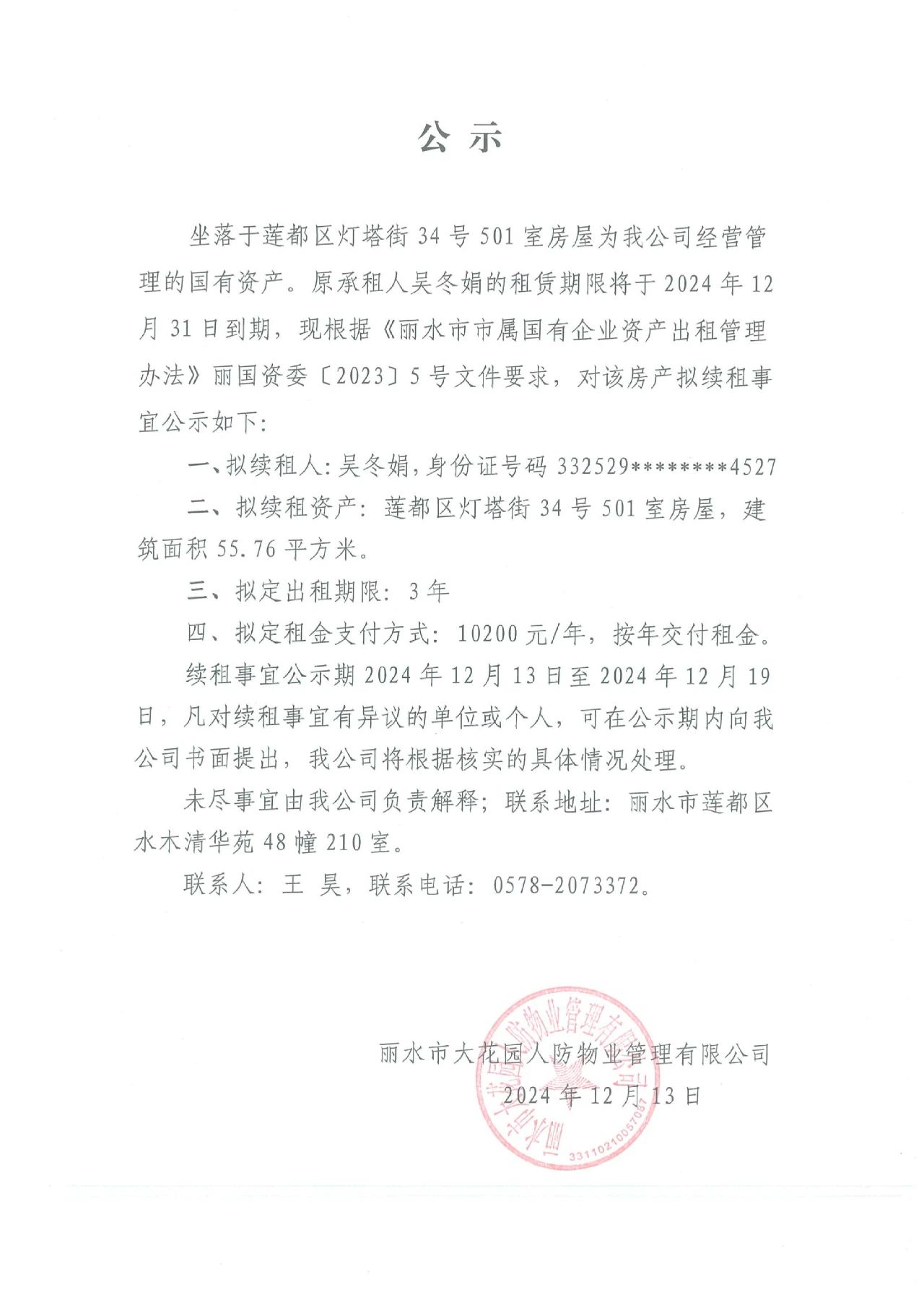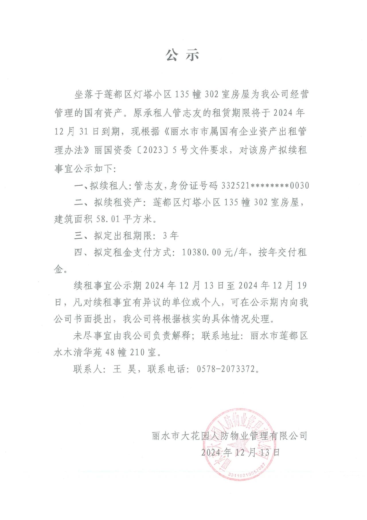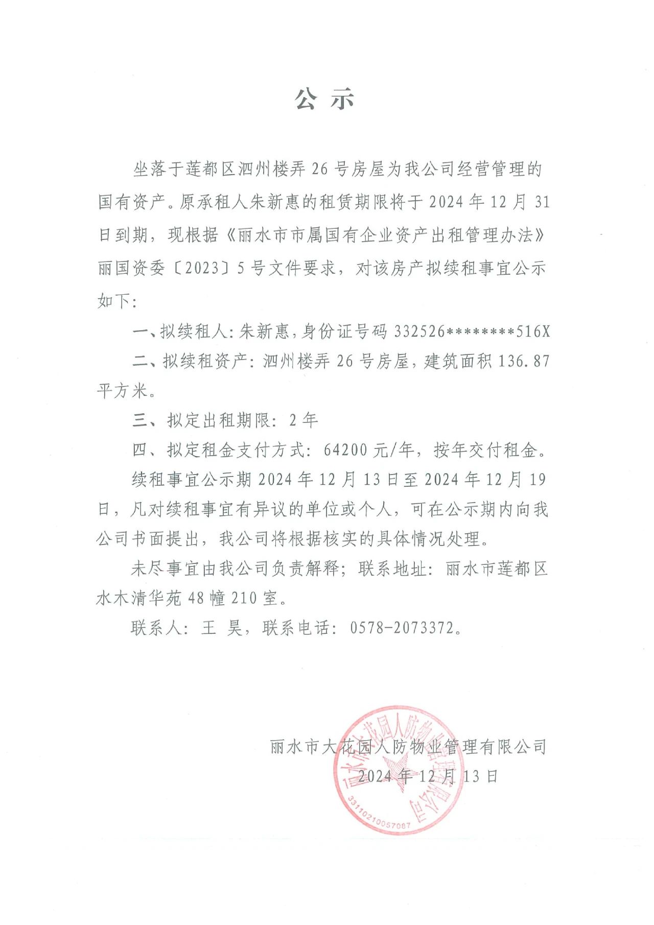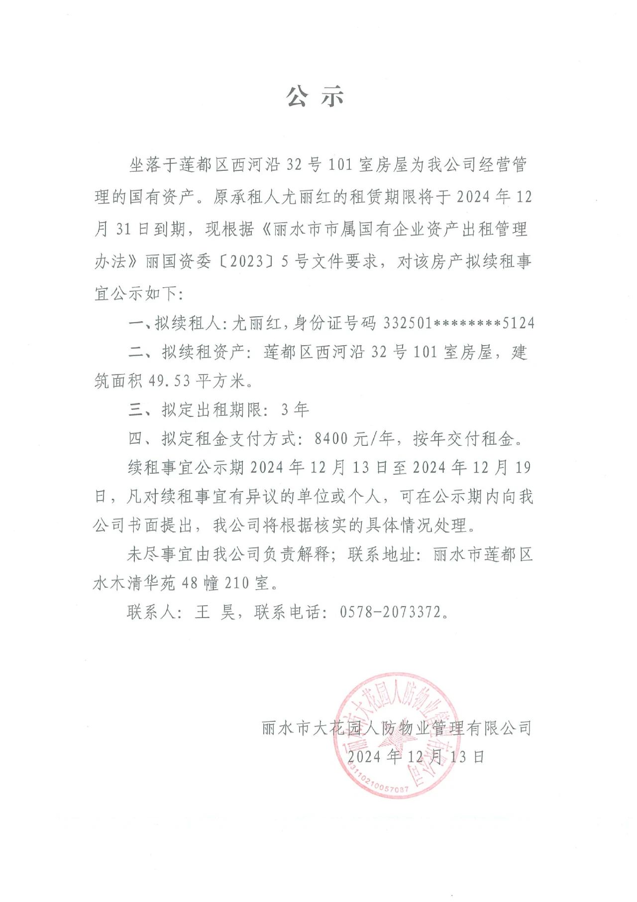 續(xù)租公示