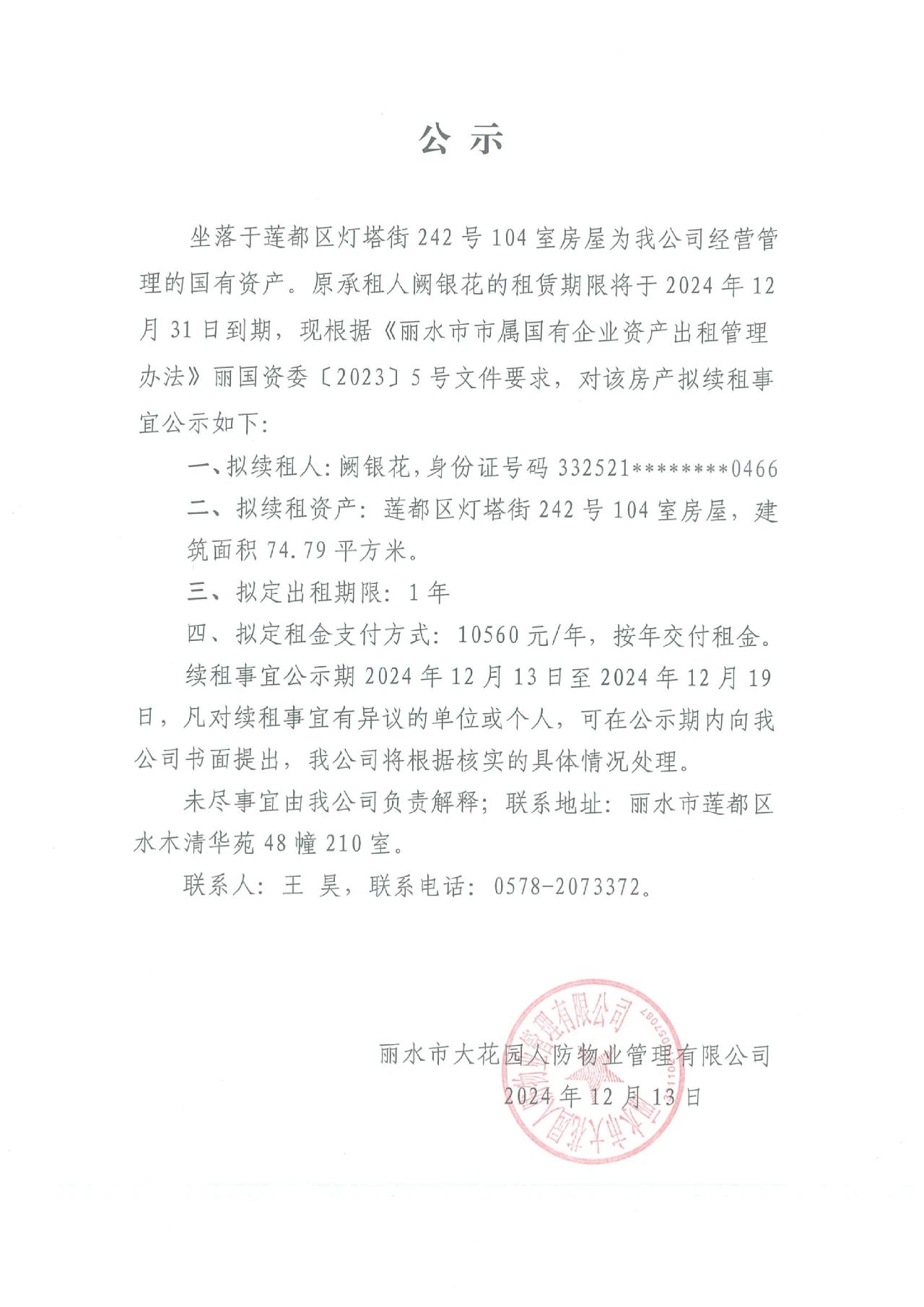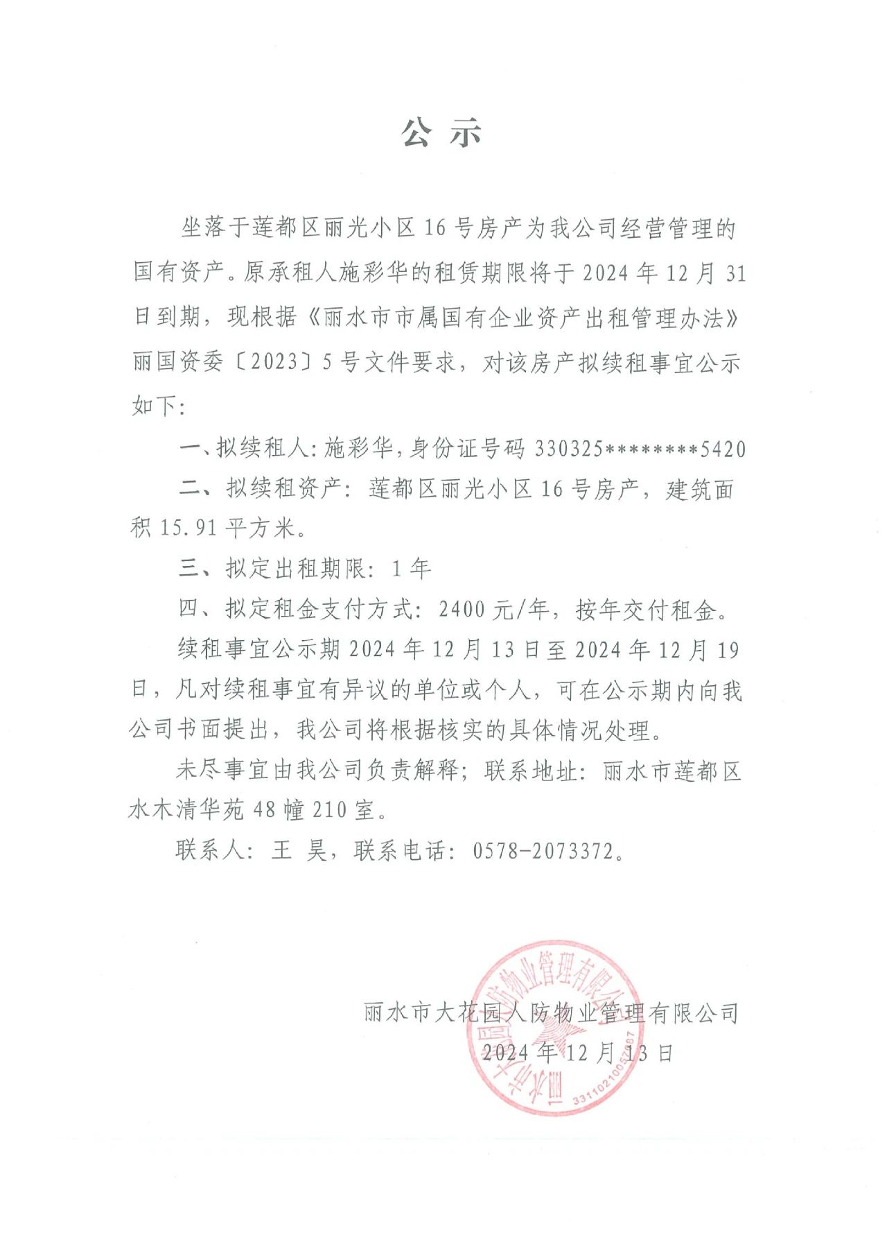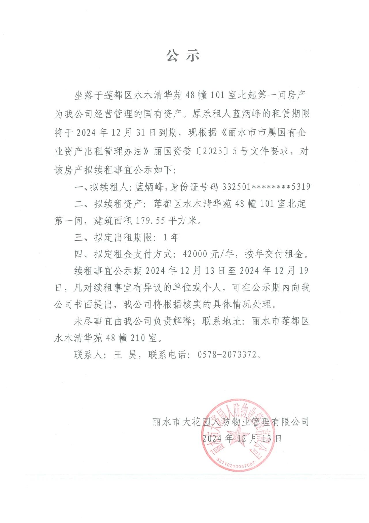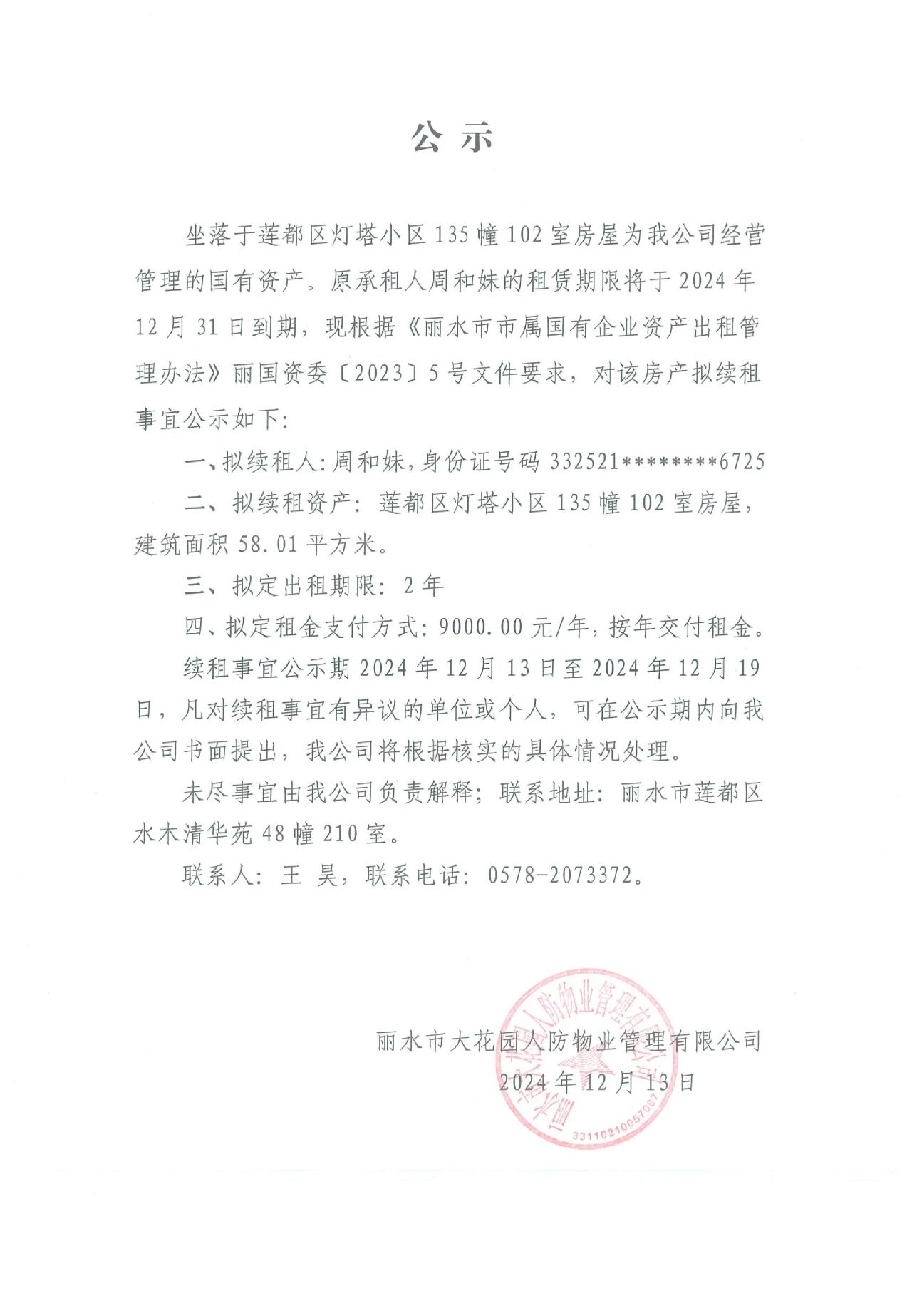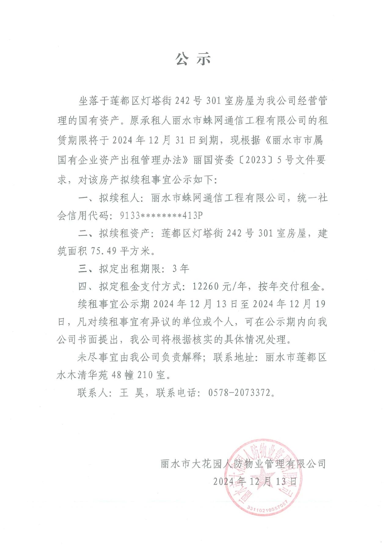 續(xù)租公示